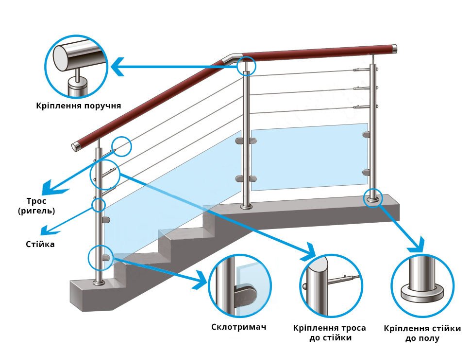 ограждение на лестницу из тросов для частных и коммерческих объектов;
