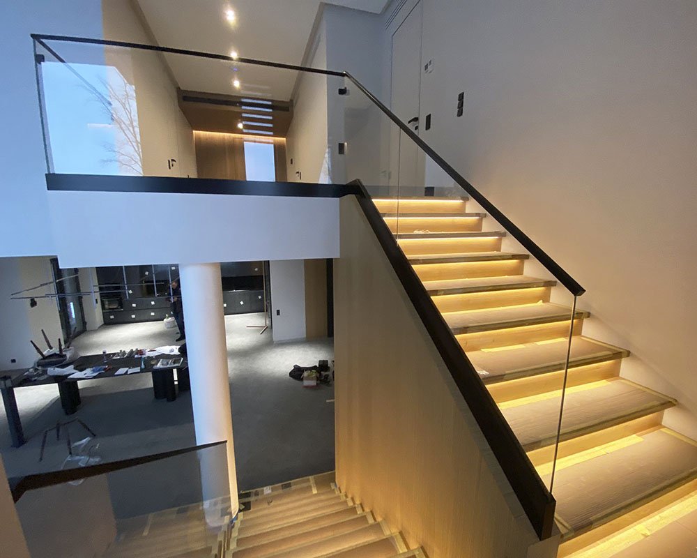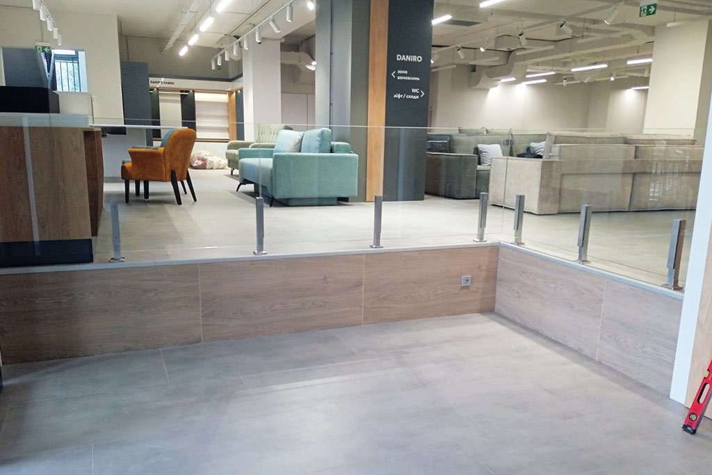 Толщина стекла, шаг креплений и система фиксации подбираются так, чтобы конструкция выдерживала реальные нагрузки и оставалась надёжной в долгосрочной перспективе.